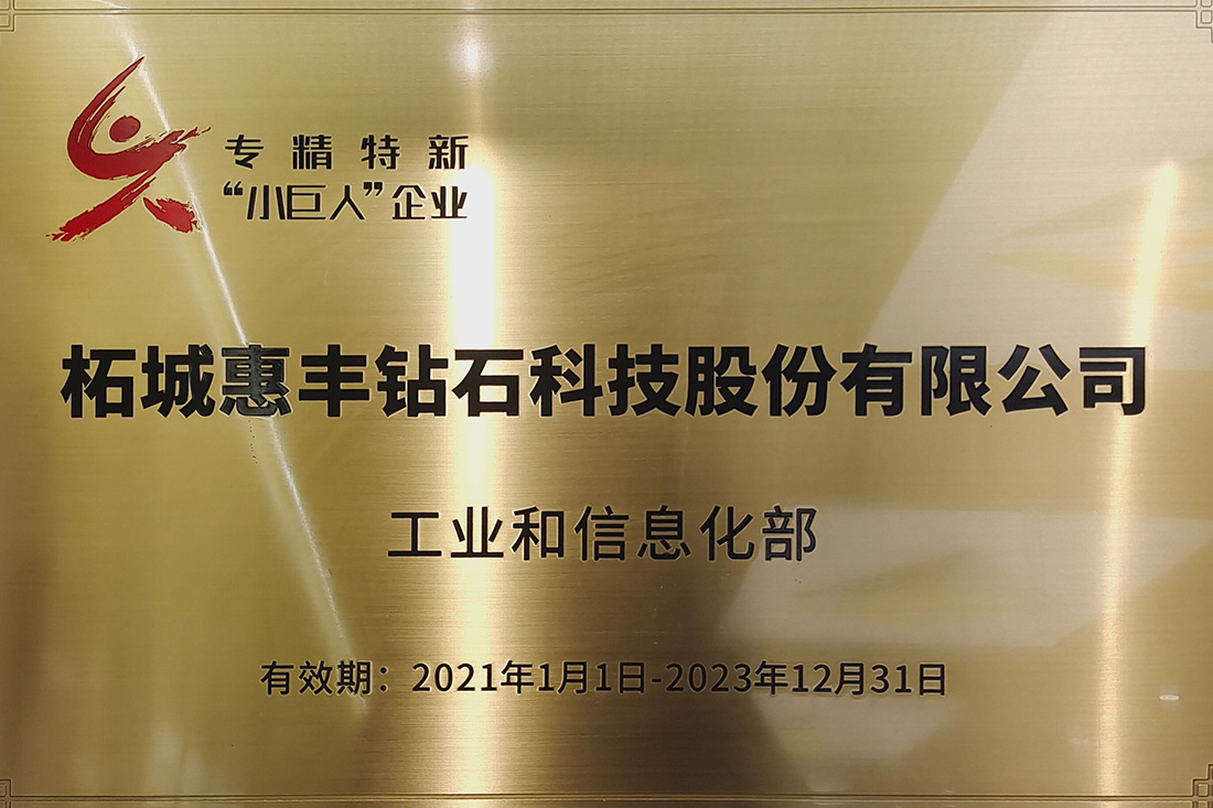 2020年12月被國家工信部評為“專精特新”重點小巨人企業(yè);2021年11月被國家工信部認定為“人造單晶金剛石微粉”制造業(yè)單項冠軍;2019年公司被河南省工信廳認定為“河南省智能工廠”